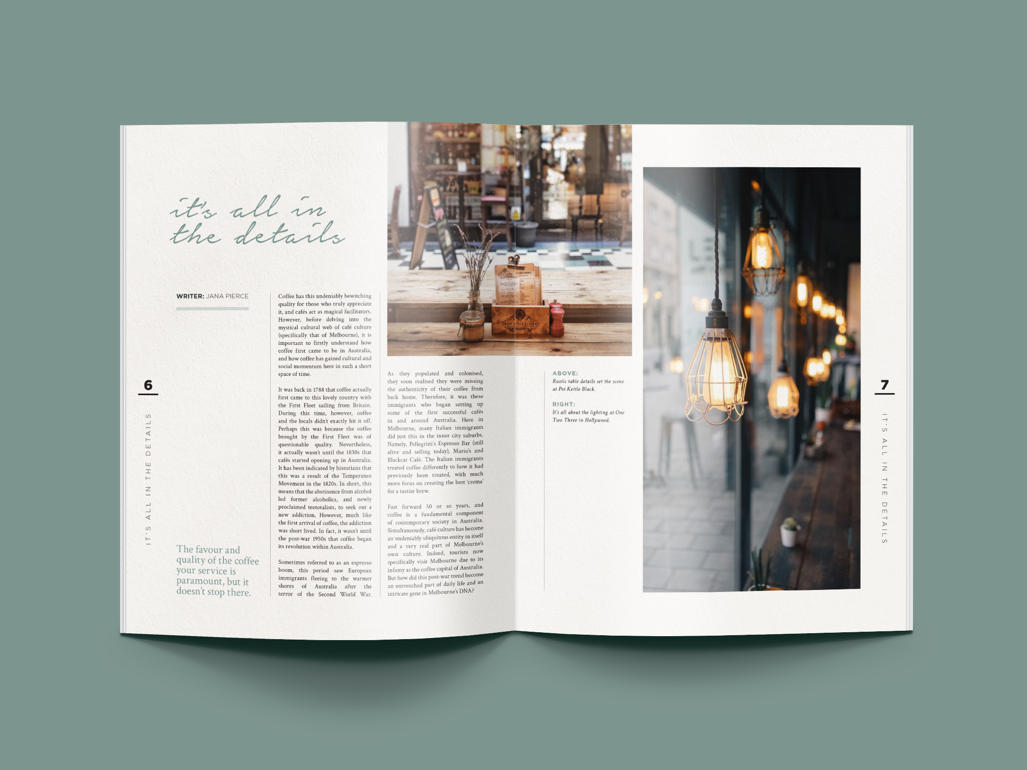 Grind Magazine is a concept magazine catering to true coffee geeks. With content around finding the best third wave coffee around the world and preparing great coffee at home, it is intended to be distributed to and read in specialty coffee shops.
